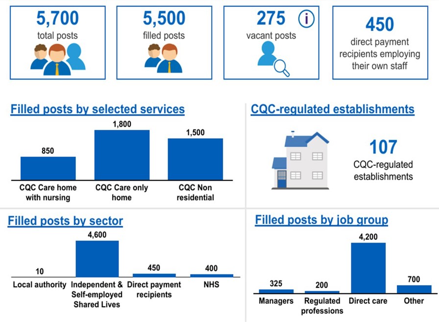 Image shows - summary of the adult social care workforce in Torbay